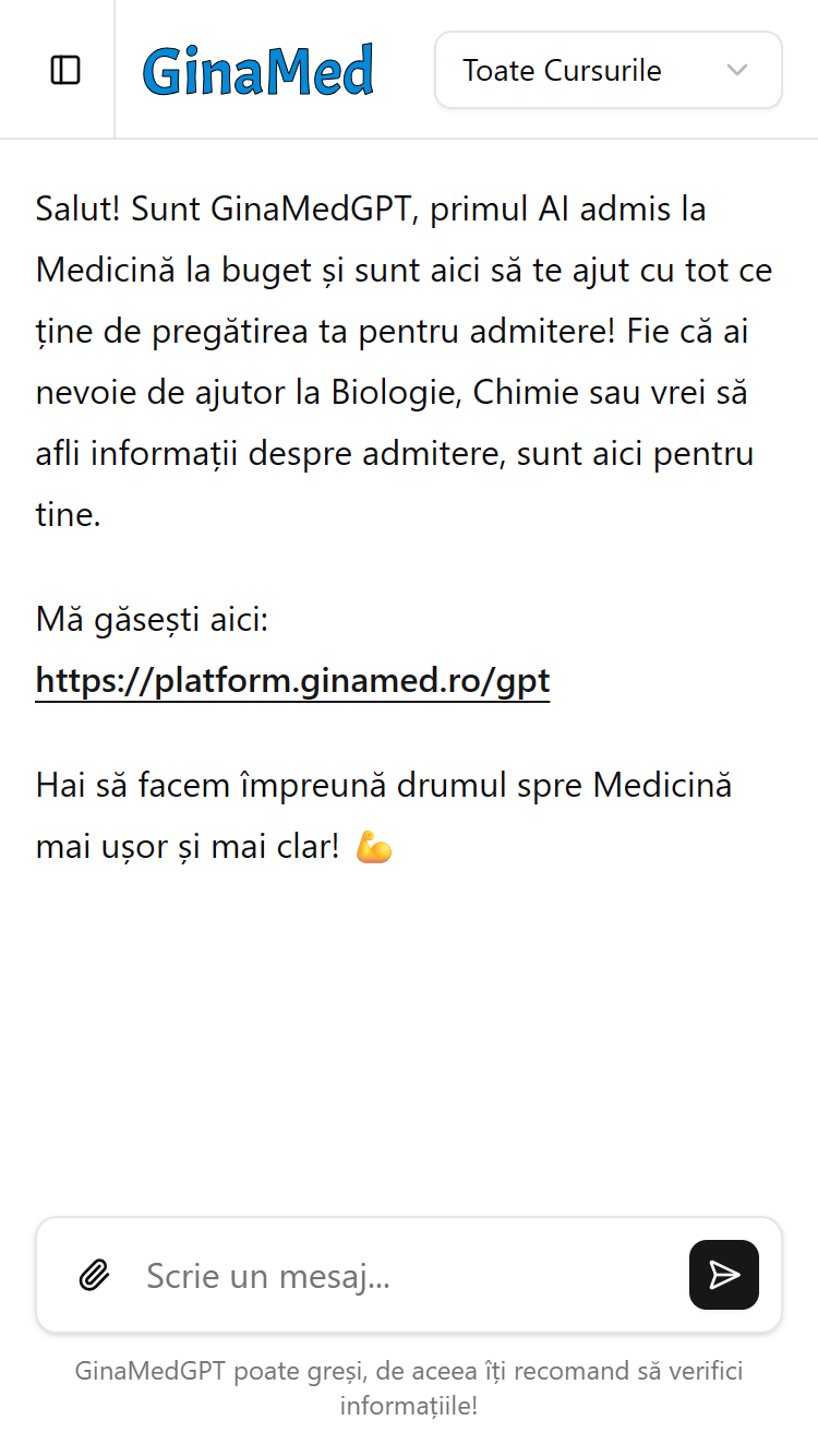 GinaMedGPT este disponibil la: https://platform.ginamed.ro/gpt